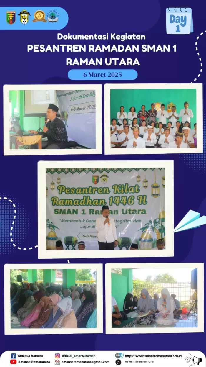 Di tengah kemajuan teknologi yang pesat, tantangan bagi generasi muda semakin besar, terutama dalam menjaga integritas dan kejujuran. Hal ini menjadi perhatian serius, mengingat peran teknologi digital yang semakin dominan dalam kehidupan sehari-hari. Dalam rangka menjawab tantangan tersebut, SMAN 1 Raman Utara mengadakan kegiatan pesantren kilat dengan tema "Membentuk Generasi Berintegritas dan Jujur di Era Digital".